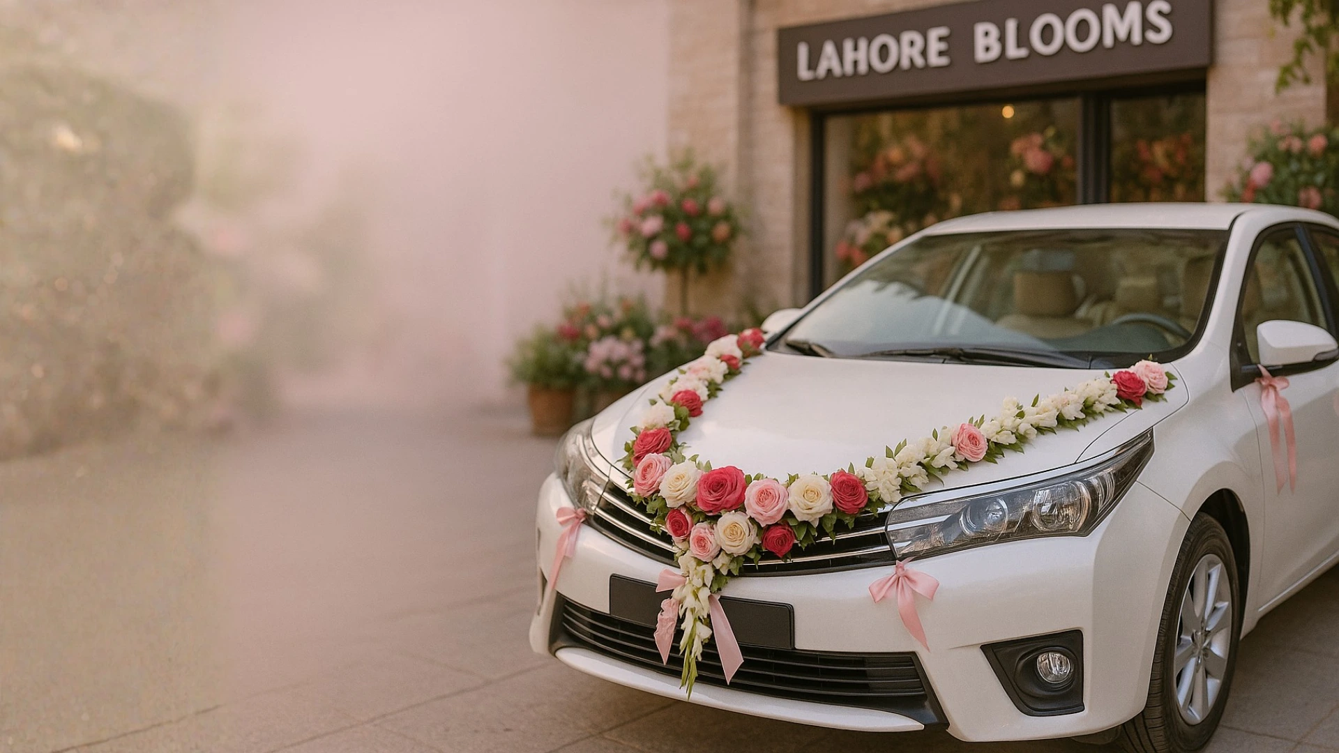 Family business in Lahore now bringing that experience from bouquets to full wedding car flowers, bridal car bouquets and barat car garlands.